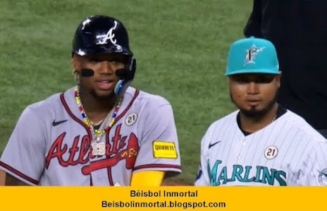 Dos grandes estrellas venezolanas de las Grandes Ligas: Ronald Acuña Jr., de los Bravos de Atlanta y Luis Arráez, de los Marlins de Miami. (Archivo: Hnos. Dupouy Gómez).